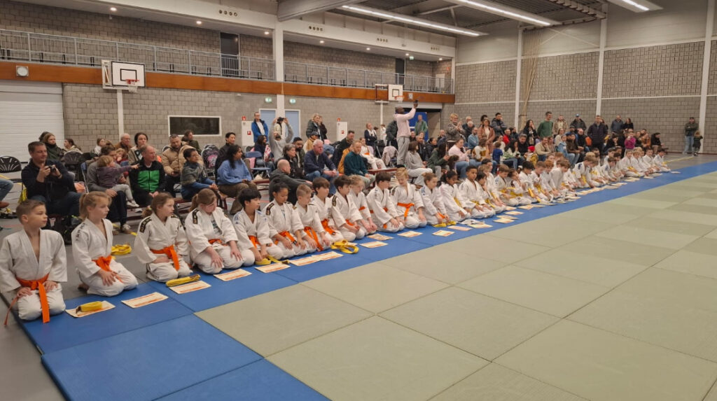 De sfeer in de zaal was enthousiast en gespannen tegelijk, met veel support van familie en clubgenoten langs de kant. Voor sommigen was het hun allereerste examen, voor anderen weer een mooie volgende stap in hun judocarrière.